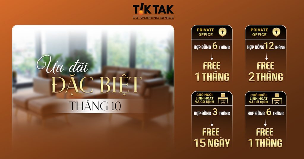 Tiktak Coworking Space – Không gian chuẩn hạng A cho chuyên gia cao cấp